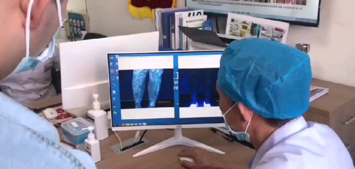 腿部白斑在常光下并不明顯。但在專業儀器伍德燈檢查下,能看到白斑幾乎遍布了整個小腿。病情遠比肉眼看到的更加嚴重。
